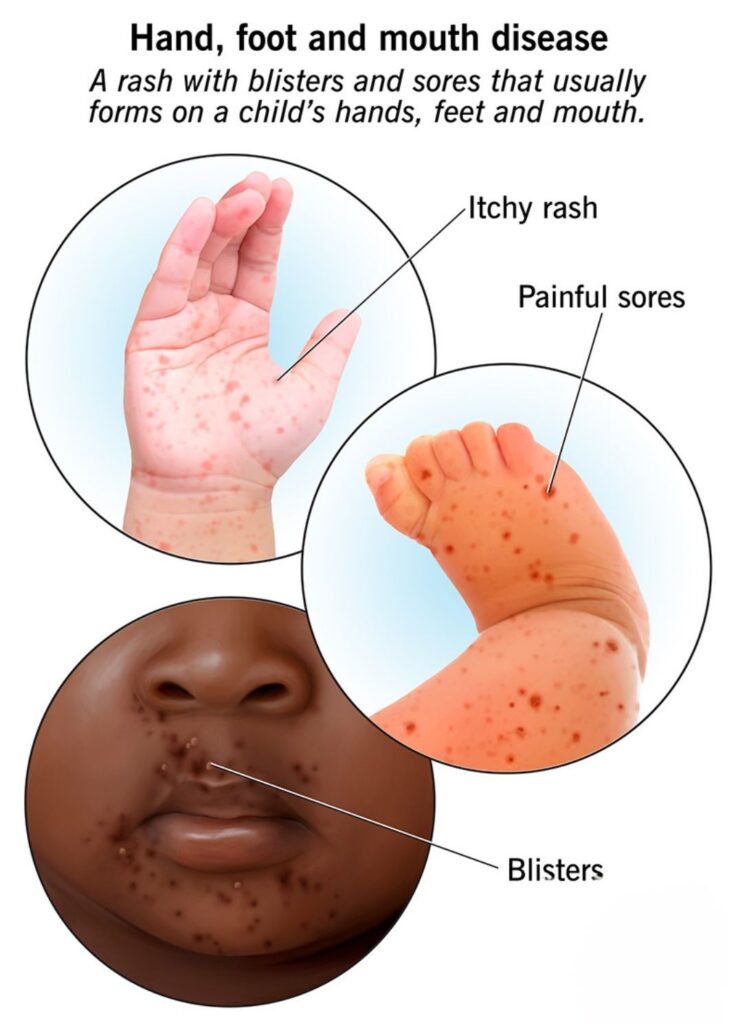 हैंड-फुट-माउथ सिंड्रोम एक सांक्रामक वायरल बीमारी है, जो बच्चों में आम पाई जाती है। यह मुख्य रूप से Coxsackievirus और Enterovirus के कारण फैलती है। वायरस बच्चों की प्रतिरोधक क्षमता कम होने का फायदा उठाकर शरीर पर तेजी से असर डालता है।